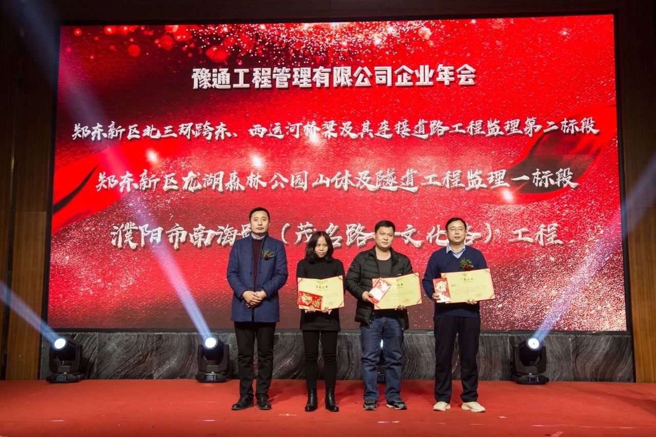 本次年會中,最讓人動容的是2018年度表彰大會環節。公司共計頒發了“2018年度優秀團隊”獎、“2018年度優秀分公司”獎、獲得“2018年度市政工程金杯”獎項目、獲得“2018年度國家優質金杯”獎項目、“2018年度項目優秀員工”獎、“2018年度優秀總監”獎、“2018年度公司優秀員工”獎七個獎項以嘉獎為公司發展默默付出的優秀員工們。因為每一位豫通家人的付出,才有了不斷前行、共創輝煌的豫通管理!