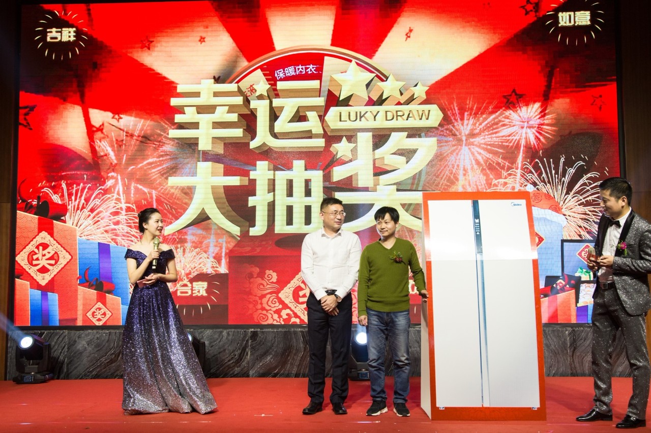 除了精彩的節目表演,大家最最最期待的應該是驚喜刺激的抽獎環節了,豐厚精美的獎品,更是讓現場氣氛高潮迭進,年會上安排了三輪抽獎,抽到獎品的同事們都是大家羨慕的幸運兒。
