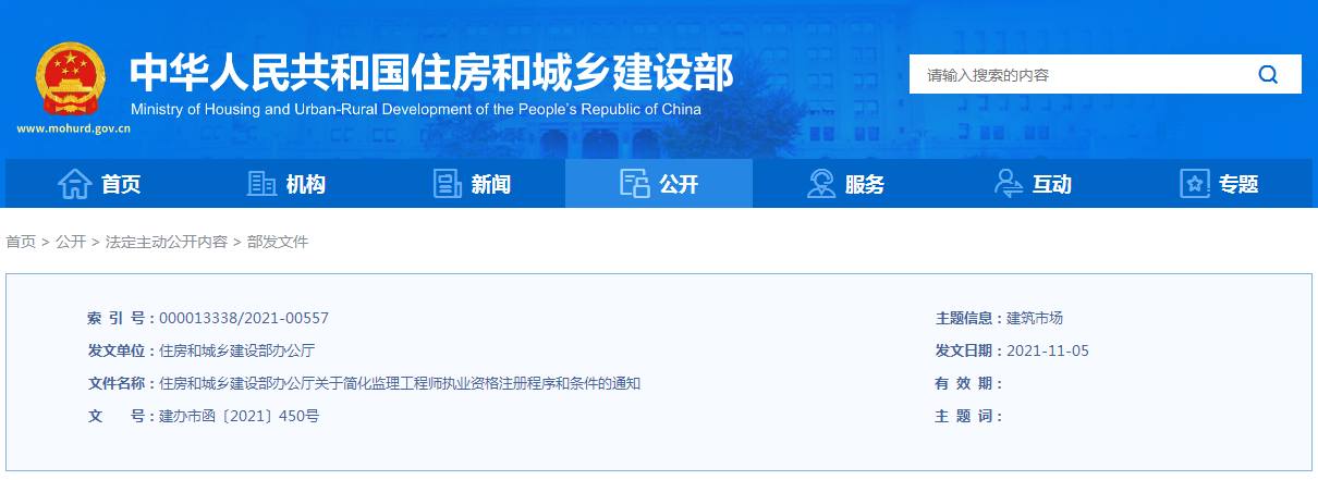 日前,住建部網(wǎng)站公布了《關(guān)于簡(jiǎn)化監(jiān)理工程師執(zhí)業(yè)資格注冊(cè)程序和條件的通知》,將監(jiān)理工程師注冊(cè)的程序和條件進(jìn)行了優(yōu)化,原文如下: