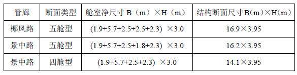 本次設計綜合管廊根據入廊管線情況與建設條件,管廊斷面尺寸為: